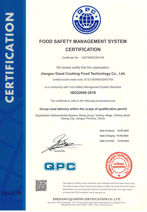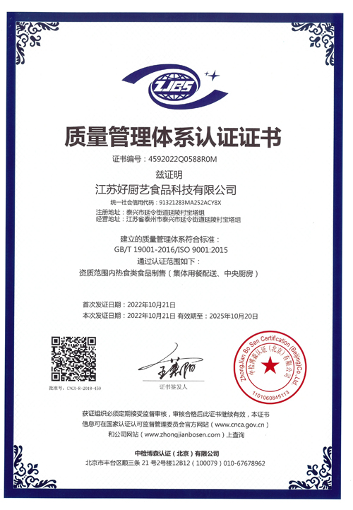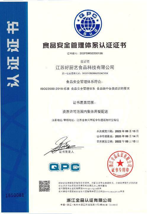 食品安全管理体系认证书