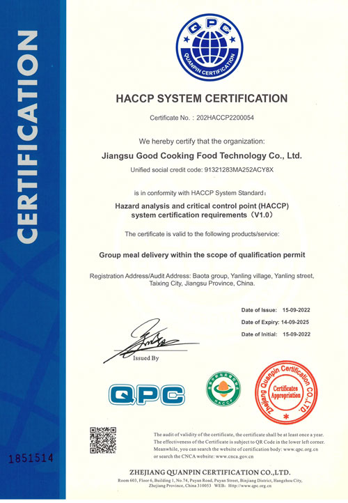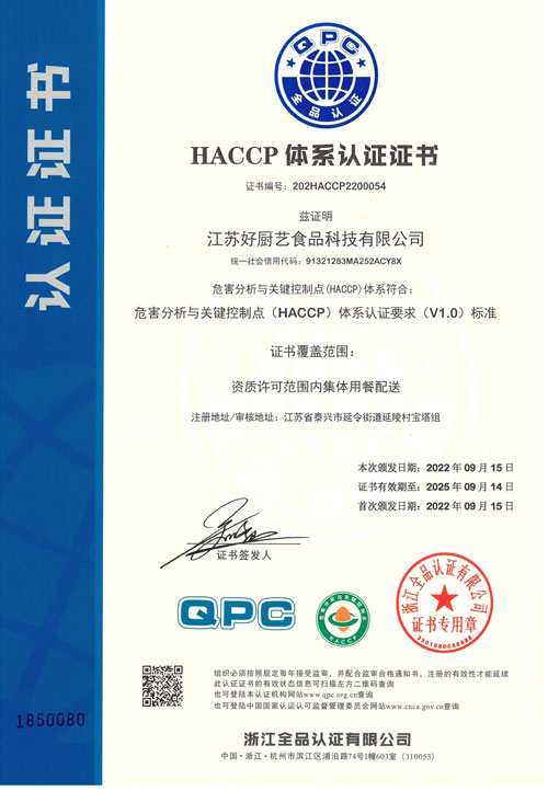 HACCP体系认证证书