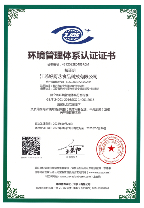 环境管理体系认证证书